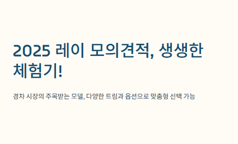 안녕하세요! 요즘 완전 핫한 2025년형 기아 레이를 직접 체험해봤어요. 사실 저도 처음에는 “경차? 좀 작고 답답하지 않을까?”라는 편견을 가지고 있었는데요. 직접 운전해보고 나서는 생각이 완전 바뀌었답니다. 그럼 제가 느낀 2025 레이의 진짜 매력과 모의견적 과정을 하나하나 알려드릴게요.