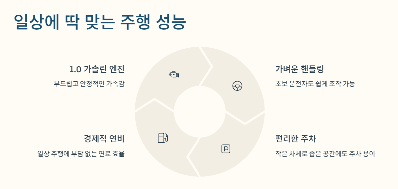 솔직히 1.0 가솔린 엔진이라서 출력이 부족할까 걱정했는데, 막상 도심 주행해보니 부드럽고 안정적인 가속감이 마음에 들었어요. 핸들링도 가볍고 주차할 때도 편해서 초보 운전자에게 딱 맞더라고요. 연비도 생각보다 좋아서 경제적으로 운전할 수 있었답니다. 2023그랜저하이브리드모의견적처럼 고연비 모델은 아니지만, 일상에서 부담 없이 탈 수 있는 레이의 매력은 진짜 최고였어요.
