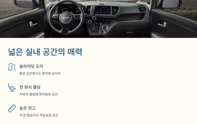 게다가 전 좌석 폴딩 기능이 가능하다는 점! 캠핑 갈 때나 차박할 때 차 안에 에어매트 하나 깔아두면 침대처럼 편안하게 잘 수 있더라고요. 이런 공간 활용은 2023그랜저모의견적에서도 느끼지 못한 레이만의 매력이었어요.