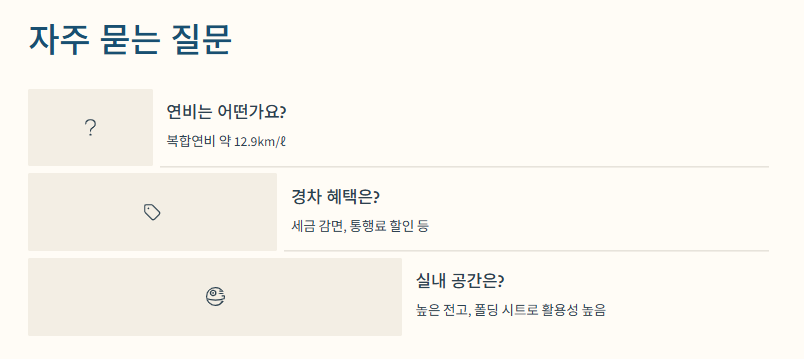 A: 프레스티지 트림은 안전 및 편의 사양이 강화되어 있어, 초보 운전자나 여성 운전자에게 추천드립니다.