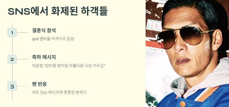 박준형은 자신의 SNS에 하객 인증샷과 함께 유쾌한 축하 메시지를 올리며 팬들과 소통했습니다.