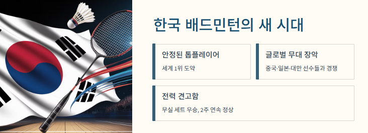 → 세계무대 제패로 이어지는 자신감 회복, 그리고 한국 배드민턴 위상 상승입니다.