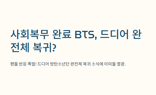 사회복무 완료 BTS 복귀 소식