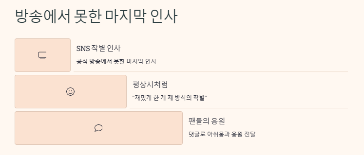 4. "부끄러워서 방송에서 못한 마지막 인사"