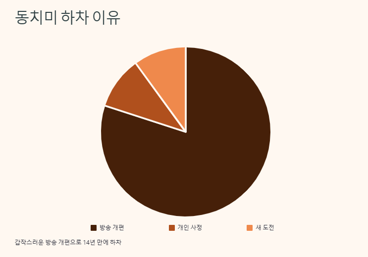 갑작스러운 방송 개편으로 인해 14년 만에 하차하게 되었습니다.
