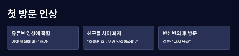 솔직히 말해서 추성훈이 유튜브에서 극찬한 그날, 저도 완전 혹했어요. 그래서 이번 후쿠오카 여행 일정에 바로 ‘토이치’를 넣었죠. 여행 전날에 “추성훈 후쿠오카 맛집이라며?” 하면서 친구들 사이에서 난리났거든요. 사실 “진짜 그렇게 맛있어?” 하는 반신반의도 있었지만, 막상 가보니까… 결론부터 말하면, 다 먹고 나서 저도 “다시 올래” 했어요.