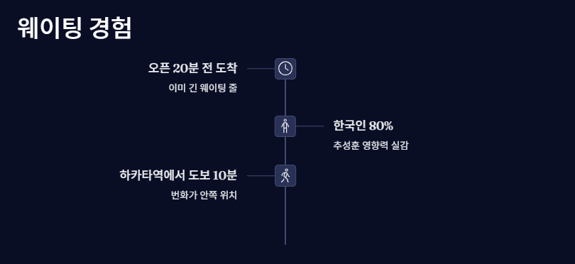 ‘추성훈 후쿠오카 맛집’으로 떠오른 만큼, 요즘은 웨이팅도 더 길어졌대요. 저녁시간엔 특히 줄이 더 길다고 하니까, 가능하면 점심 타임에 맞춰 가보세요.