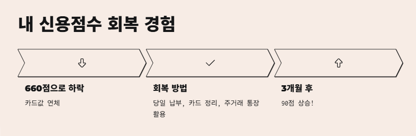 저는 진짜 한때 660점까지 떨어진 적 있어요. 이유는 알바 월급 안 들어와서 카드값 늦게 낸 거... 그때 진짜 무섭고 막막했는데, 아래 방법들 따라하니까 3달 만에 90점 정도 올랐어요!