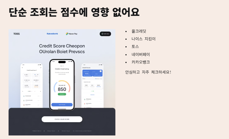 이건 진짜 저도 몰랐던 건데, 친구가 “야, 조회하면 점수 떨어져!” 이래서 진짜 무서웠거든요. 근데 올크레딧이나 나이스 지킴이, 토스, 네이버페이, 카카오뱅크 같은 데서 보는 거는 점수에 아무 영향 없대요. 안심하고 자주 체크하세요.