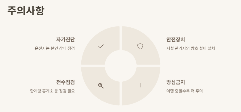 - 운전자는 항상 본인의 상태를 자가진단해야 해요.