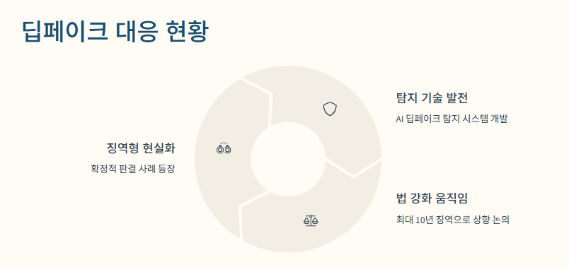 그래서 요즘은 AI 딥페이크 탐지 기술도 함께 발전 중이고, 정부랑 수사기관도 민간 플랫폼이랑 협력해서 잡아내는 시스템을 만드는 중이래.