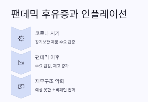 코로나 때는 나도 델몬트 오렌지주스 같은 장기보관 제품을 엄청 쟁여놨었어. 근데 이게 코로나 이후 갑자기 수요가 뚝 떨어지면서 재고가 쌓인 거야. 그러면서 재무구조가 급격히 나빠진 거지. 팬데믹 이후 예상 못 한 소비패턴 변화가 결국 “델몬트 파산”을 불러온 셈이야.