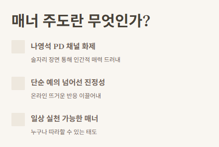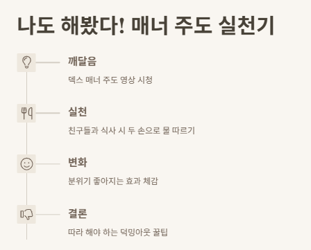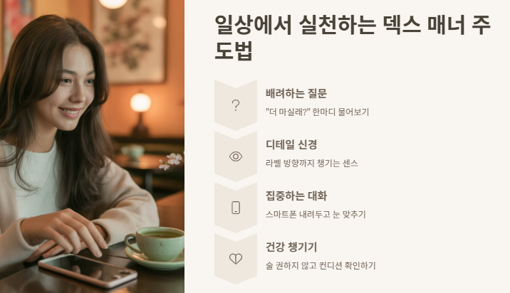 3) 우리 일상에서도 실천 가능한 매너 주도 팁까지 정리해봤어요.