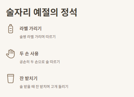 작은 행동부터 바꿔보세요. 두 손으로 잔 따르기, 고개 숙이기 같은 것부터 시작하면 돼요.