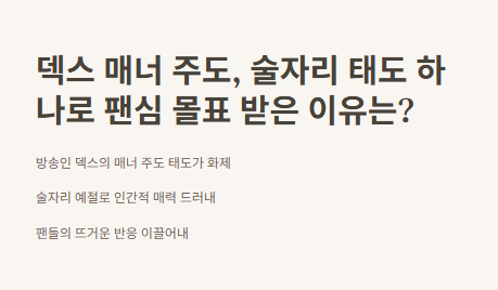 솔직히 요즘 방송 보면 연출 같다는 생각 들 때 많잖아요. 근데 덱스는 아니에요. 왜냐면 특수부대 출신이라 그런지, 말 한마디 한마디에 절제미가 묻어나더라고요. 예능 나올 때도 항상 진심인 느낌이라 믿음이 갔고, 이번 매너 주도도 “역시 덱스다” 싶었어요.