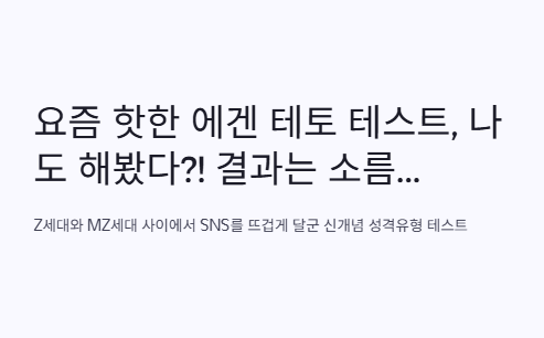 요즘 인스타, 블로그, 심지어 카톡 프로필까지 완전 점령한 테스트 하나, 바로 에겐 테토 테스트! 솔직히 나도 이거 맨날 보면서 '도대체 뭐길래 다들 난리야?' 싶었는데, 궁금함 참다가 결국 해봤음. 그래서 이 글은 진짜 에겐 테토 테스트 직접 해본 후기야. 나같은 사람 많을 것 같아서, 내가 느낀 거 진짜 자세히 써볼게!