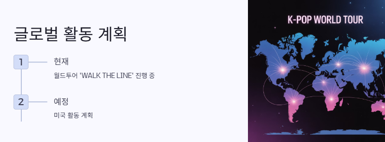 현재 월드투어 ‘WALK THE LINE’ 중이며, 미국 활동도 예정되어 있어요.