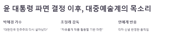 윤 대통령 파면 결정 이후, 대중예술계의 목소리