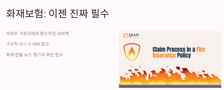 화재보험은 불시에 닥칠 수 있는 피해를 대비하는 유일한 방법이에요. 아파트 거주자에게 특히 필요해요.