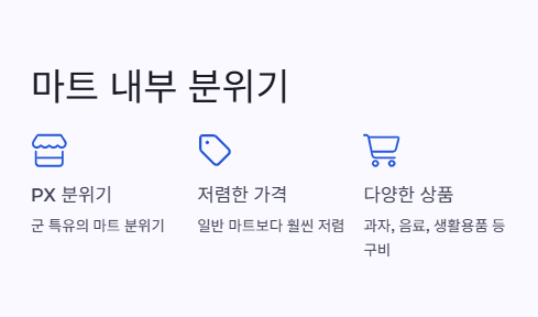 사실 내부는 촬영 금지라 사진은 못 찍었지만, 진짜 PX 특유의 분위기 그대로예요. 군생활한 분들은 뭔지 알 거예요.