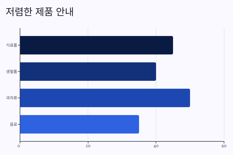 식료품, 생필품, 과자류는 일반 마트보다 훨씬 저렴해요.