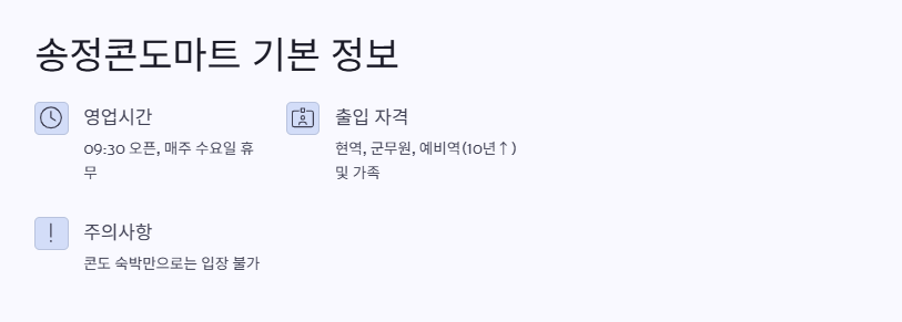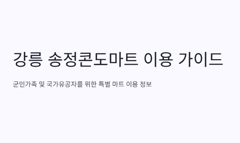 강릉 송정해변 앞에 위치한 국군복지단 송정콘도마트는 군인가족 및 국가유공자 가족들이 이용 가능한 군 전용 마트입니다. 최근 영업시간 및 출입 조건이 변경되면서 이용에 주의가 필요한데요, 현장 경험을 바탕으로 생생한 정보와 주의사항을 정리해드릴게요.