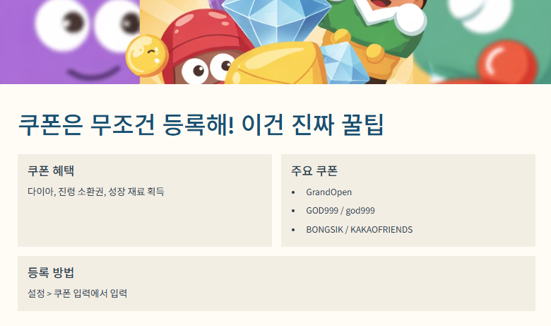 - 갓깨비 키우기 쿠폰 정리표 있나요?