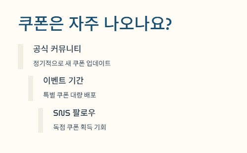 Q. 쿠폰은 자주 나오나요? 네, 공식 커뮤니티에서 수시로 업데이트되므로 자주 확인하세요.