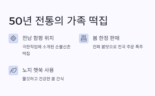 - 극한직업 쑥떡집의 위치와 전통: 50년 손맛을 이어가는 가족 떡집, 전남 함평에 위치