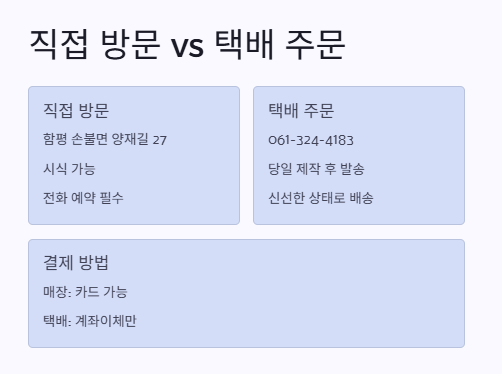061-324-4183 / 010-4634-8910 으로 전화해서 원하는 떡 종류랑 수령 날짜 말하면 돼. 입금하면 그날 바로 만들어서 택배 보내주신대. 나는 진짜 받자마자 바로 먹었는데도 떡이 전혀 질지 않고 말랑했어!