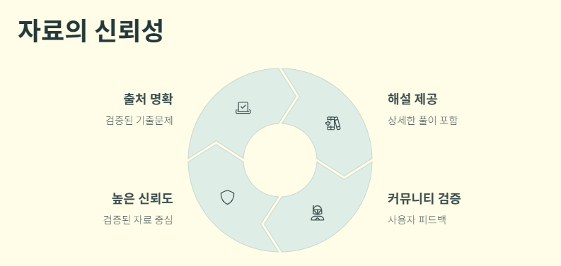 기출비에서는 출처가 명확한 기출문제 위주로 자료가 등록되며, 해설이 함께 제공되는 경우가 많아 신뢰성이 높습니다.
