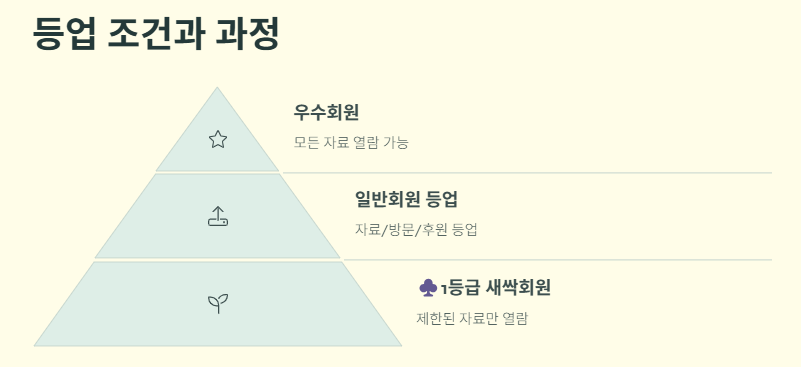 '♣1등급'의 새싹회원으로 분류되며, 이 상태에서는 열람 가능한 자료가 제한됩니다. 더 많은 기출문제 자료를 보기 위해서는 '일반회원 등업'이 필요하며, 기출비에서는 다음과 같은 세 가지 등업 방식을 운영 중입니다.
