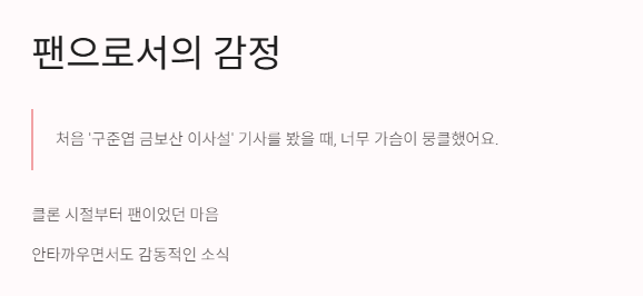 저는 이번 일을 계기로, 다시 한번 진정한 사랑이 무엇인지 생각하게 되었어요. 그리고 팬으로서 앞으로도 계속 응원할 거예요.