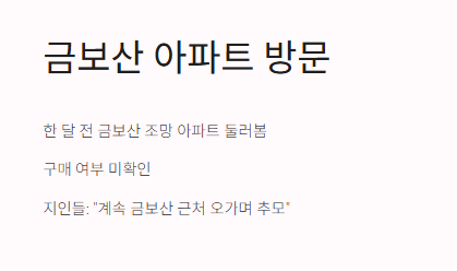 정확한 구매 여부는 확인되지 않았지만, 금보산 근처 아파트를 둘러본 건 사실이에요.