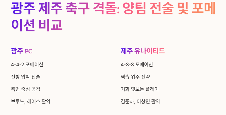 광주 제주 축구 격돌: 양팀 전술 및 포메이션 비교