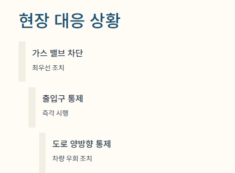 현장에는 소방대, 경찰, 한국가스공사까지 전부 출동했어. 특히 가스 밸브 차단 작업이 제일 먼저 이뤄졌고, 출입구 통제도 즉각 시행됐대. 도로도 양방향 전면 통제라 주변 차량도 우회해야 했고.