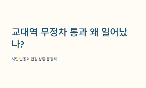 안녕! 요즘 지하철 자주 타는 나로선 진짜 충격적인 사건 하나 있었어. 바로바로 교대역 무정차 통과 말이야. 솔직히 아침에 지하철 탔다가 “교대역 안 선대요” 이 안내방송 들을 때 나만 멘붕한 거 아니지?