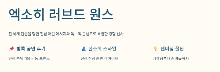 - → 방콕 팬미팅 현장 분위기와 무대 구성, 감동 포인트 정리