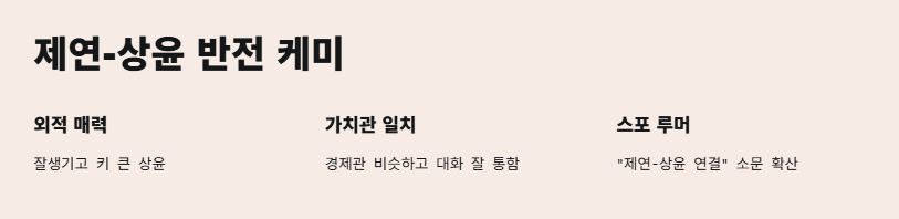 근데 또 상윤이 나오면서 분위기 뒤흔든 건 사실. 잘생기고 키 크고, 제연이랑 경제관도 비슷하고 진짜 말도 잘 통하니까 팬들 사이에서도 갑자기 “하트페어링 스포에 제연 상윤 연결 나왔대!” 이런 얘기도 돌고.