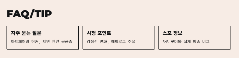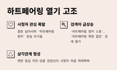 → 하트페어링 스포에서 제연과 상윤 연결설 대두, 하지만 실제 방송에서는 미묘한 거리감 존재 - 제연의 선택, 감정 정리와 ‘하트페어링 제연 집안’에 대한 이야기