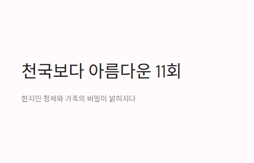 JTBC 토일드라마 '천국보다 아름다운' 11회에서는 주요 인물들의 숨겨진 관계와 정체가 드러나며 시청자들에게 깊은 감동을 선사했습니다.