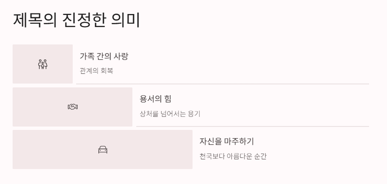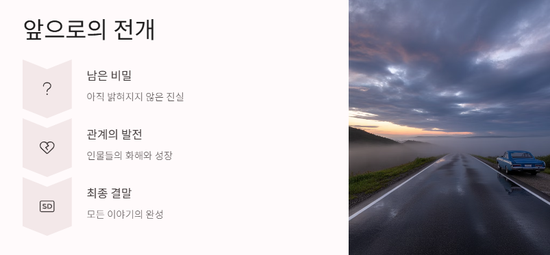이번 회차를 통해 '천국보다 아름다운'이라는 제목이 단순한 말이 아니라, 진정한 의미를 담고 있다는 것을 알게 되었어요. 가족 간의 사랑과 용서, 그리고 자신을 마주하는 용기가 천국보다 더 아름답다는 메시지를 전달하고 있는 것 같아요.