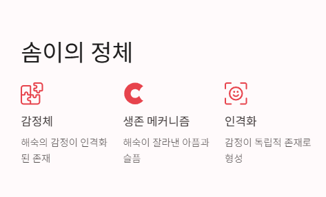 A: 솜이는 해숙의 감정체로, 해숙이 생존을 위해 잘라낸 아프고도 슬픈 감정들이 인격화된 존재입니다.