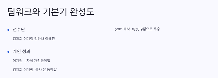 → 김제희·이계림은 복사 단체전에서 각각 은·동메달, 이계림은 3자세 단체전 개인 동메달을 획득했습니다.