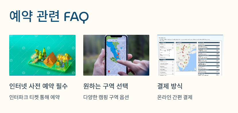 예약은 [인터파크 레저/캠핑] 카테고리에서 가능하며, 캠핑장마다 입장료가 별도라는 점도 유의하세요.