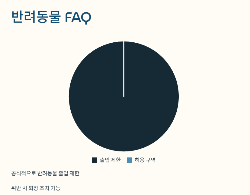 공식적으로 반려동물 출입은 제한되며, 위반 시 퇴장 조치될 수 있습니다.