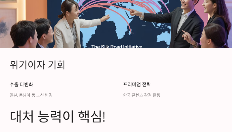 근데 한편으로는, 이런 위기 상황이 기회가 될 수도 있을 것 같아요. 요즘은 일본이나 동남아 쪽으로 수출 노선 바꾸는 기업들도 늘어나고 있거든요. 특히 한국 콘텐츠가 강한 나라는 가격 올라도 어느 정도 팔리는 힘이 있어서, 오히려 프리미엄 전략 쓰는 브랜드들도 많다고 들었어요.