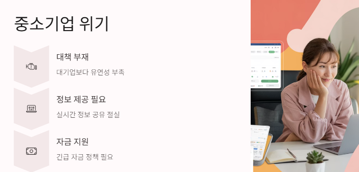 정부가 중소기업에 실시간 정보 제공하고, 긴급 자금 지원 같은 정책도 해줘야 한다고 생각해요. 이번 위기가 계기가 돼서 내수시장 강화나 수출 다변화 전략 더 집중했으면 좋겠어요.