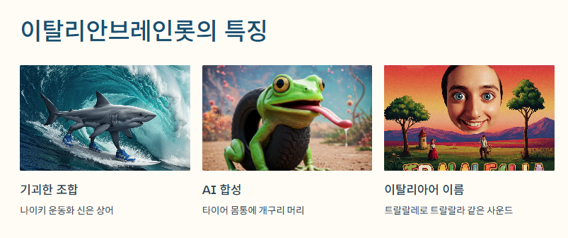 - AI 합성 이미지에 이탈리아어식 이름을 붙여 만든 기괴하고 유쾌한 밈.