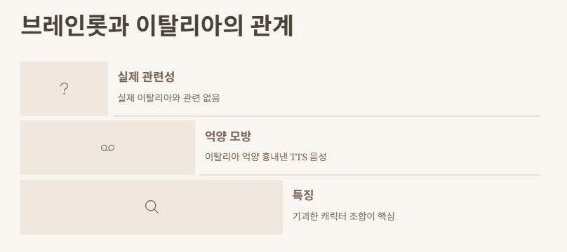 Q. 이탈리안 브레인롯은 실제 이탈리아와 관련 있나요?